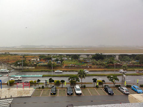 かでな道の駅から嘉手納基地を見る道の駅かでなの4階から嘉手納基地をみるが雨と曇り空で眺望は余り良くない、それでも短い時間に艦載機が2−3機来るし、輸送機や対潜哨戒機の離発着があった。 |