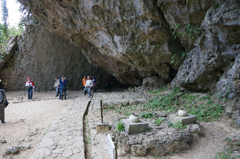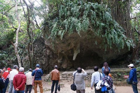 沖縄城巡り:E斎場御嶽(せーふぁーうたき)ここは聖なる祈りの場所の代表、といっても女性だけそれも王族関係者から選ばれた女性だという。コースの途中には沖縄戦当時に艦砲射撃であいたクレータの残骸が残されていた、もう70年経つのにまだ丸い穴が残り水が溜まっている。 |