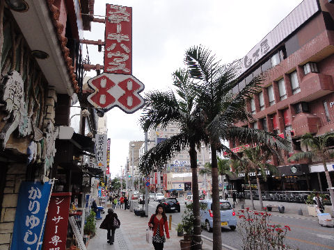 国際通り・市場通りを散策・昼食牧志駅から山側へあるいて散策、表通りとはことなる静かな雰囲気。骨壷屋さんもあった。その後、平和通商店街を抜けて国際通りへ戻り、ドンキホーテの角から市場通りを入って公設市場を目指す。ここでお土産にジャーミーマ豆腐を購入、パイナップルのスティックもデザートに食べた。 |