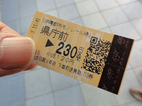 ゆいレールに乗ってみた沖縄唯一の鉄道、ゆいレールに県庁前から牧志駅まで2駅だけ乗ってみた。10分に1本のダイヤで乗車券は2次元バーコード式だった(珍しい)。駅の構造はゆりかもめの構造を小さめにしたような感じ。 |
