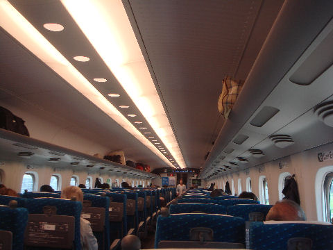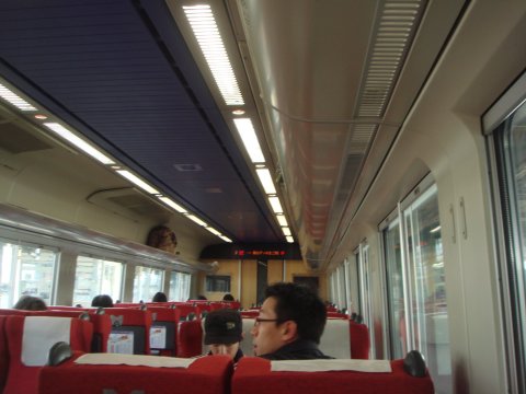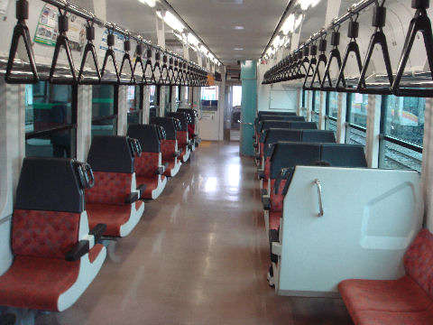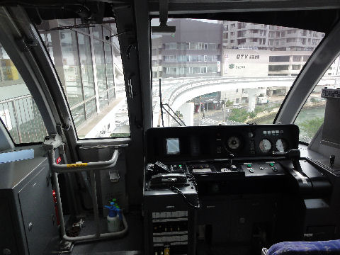 2両連結でコンパクト車両は日立製、ワンマン運転で那覇空港と首里の間を30分程で結んでいる。座席は両端を除きロングシートで、羽田のモノレールのような内部の機器カバーの飛び出しはない。 |