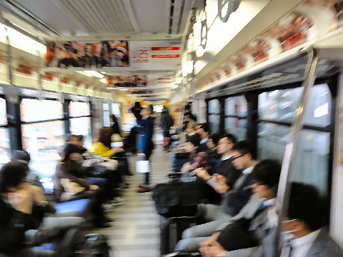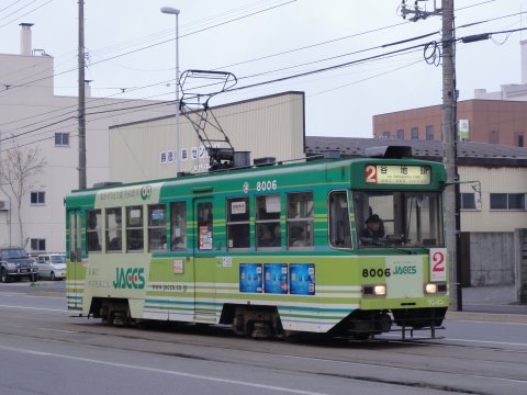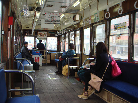 古い車両もまだ活躍新型車両(駆動台車を両端に寄せて中央部を低床化した構造)が随分増えてきているが旧型の車両もまだ元気に活躍している(床が高いので高齢者は乗り降りが大変そう)。 |