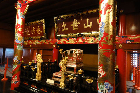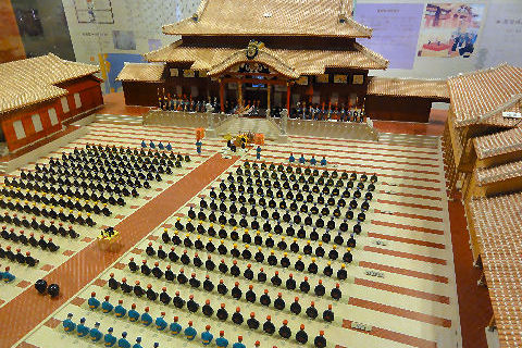 次々と再建が進み昔の姿を取り戻しつつある首里城、最近公開を始めたばかりの建物は檜の香りがしていた。でも正殿の柱の檜は台湾から探してきたとのことだが今は輸出禁止となり今後の大きな建物の再建は難しそう。 |