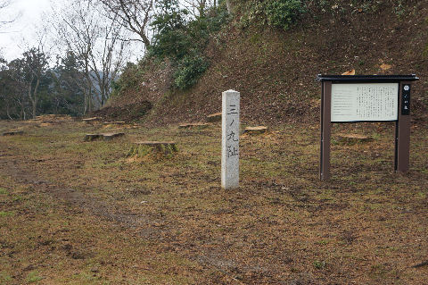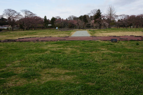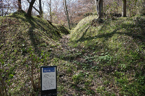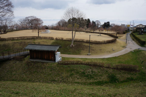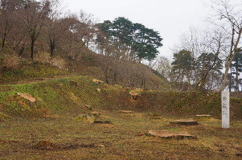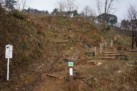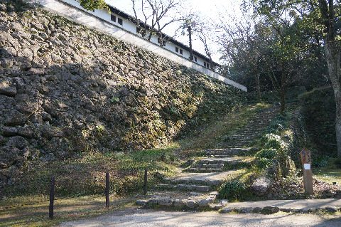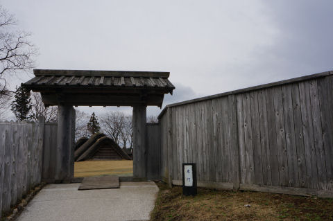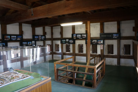 石垣もなく土塁が残る丘武家屋敷の跡が発掘されて再現建物が作られている、施設は入場無料。松山城と並存で知名度が低いが100名城選定で来場者増加? |