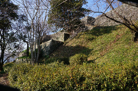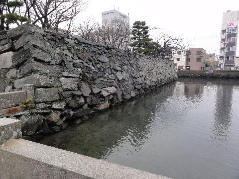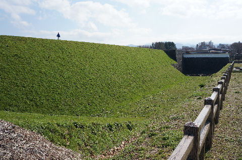 四国城巡りB:湯築城址朝一番で市電で道後温泉駅へ、有名な道後温泉本館を見たが朝早くて観光客の姿はなし、直ぐ隣に残っているのが湯築城址、土塁と堀で構成された戦国時代の城、松山城が出来てからは放置されていたがよく残っている。 |