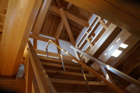 四国城巡りA:伊予大洲城45年ぶりに訪問した伊予大洲の街、JR駅から歩いて橋を渡った旧市街地の肱川へ突き出た岩の上に築かれた城。以前来たときは天守は無かったが写真などの資料も元に木造で再建された、檜材は台湾から輸入したようだが今は輸出禁止になっているとか。まだ新しい城なので木の香りがしそうな綺麗さ、木造なので階段は結構急で手すりを持って昇り降り。 |