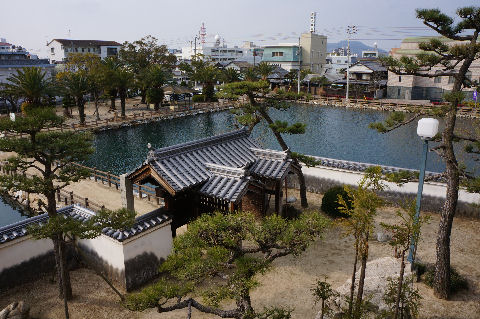 四国城巡りD:今治城今治はタオルで有名な街、フェリーやしまなみ海道で広島県と繋がっている。 |