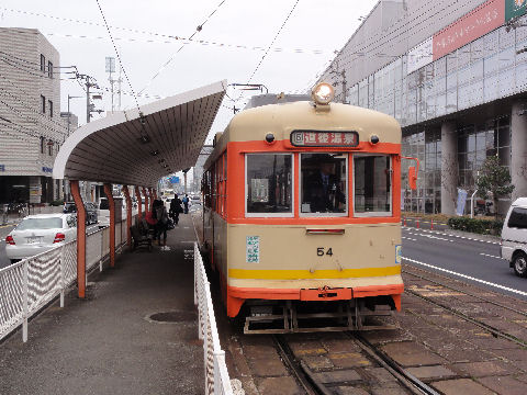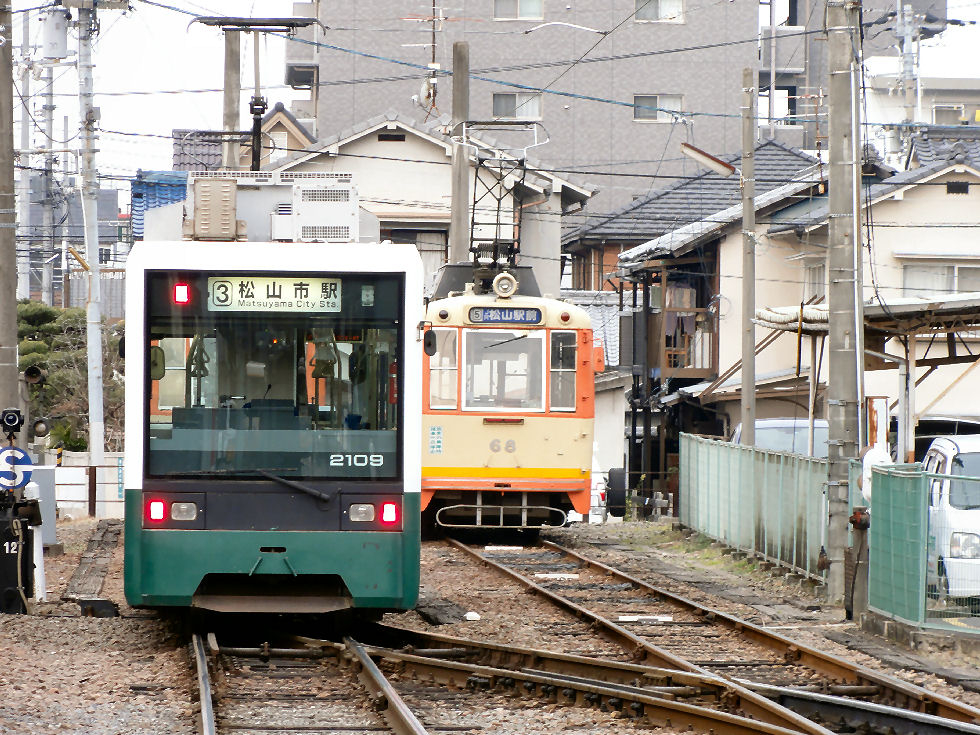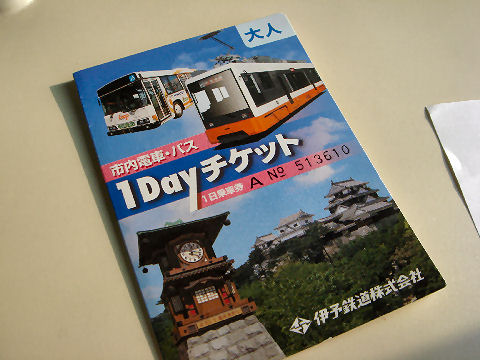 松山は市電の走る街伊予鉄道の市内電車が元気に走る街、路面以外も伊予鉄道が存在感あり。一日フリー切符400円で道後温泉などへの移動に便利(一乗車160円も割安感あり)、電車は次々どんどん来るが一部は伊予鉄の松山市駅行き、乗換証で乗り換えもできるのは良心的、ICカードも導入している(以前来たときは磁気カード)はSUICAなどとの共通運用は無いよう。 |