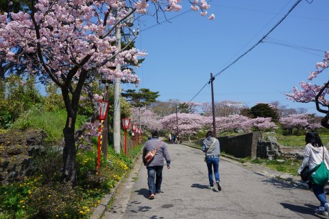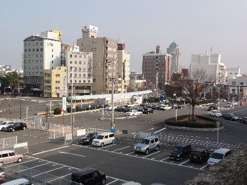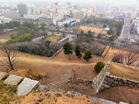 城の廻りには野球場などもあり近所の学生が走って時間計測をしていた。段々と暗くなり照明が点くようになり街へ戻ったが駅前からのメインだったアーケード街はほとんど閉店で閑散としており夕食を食べるところを探すのも大変。 |