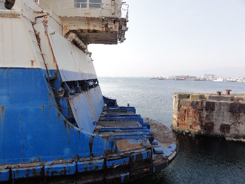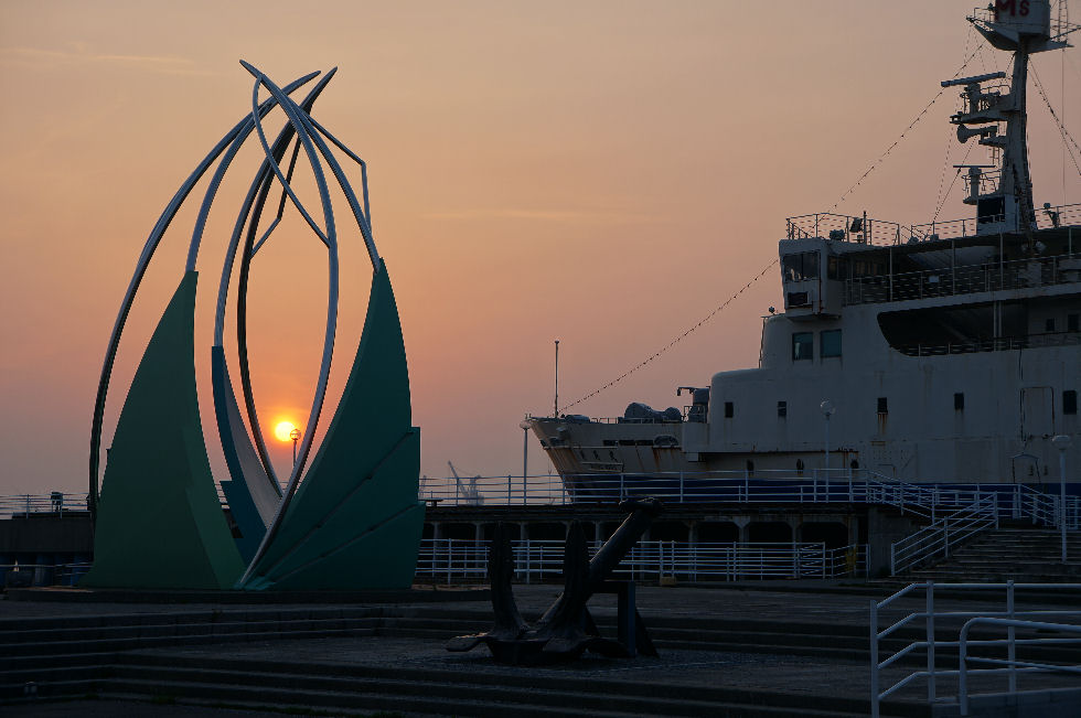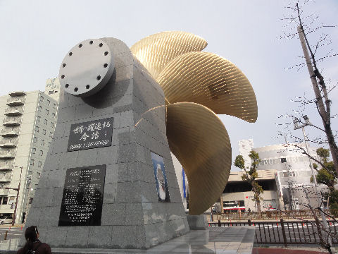 造船産業はまだ元気?今治造船が寄付した大型船のプロペラのモニュメントが港の入口に近い場所に建っていた。 |