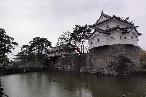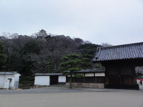 四国城巡りG:徳島城徳島城は徳島駅の裏山のような位置、正しくは城の前を流れる川を埋め立てて出来たのがJR徳島駅。雨の中、徳島城博物館を見学、村上水軍の船の展示もあった(館内は撮影禁止)。すぐ前には庭園が整備されて残っている。 |