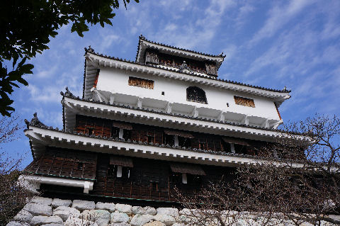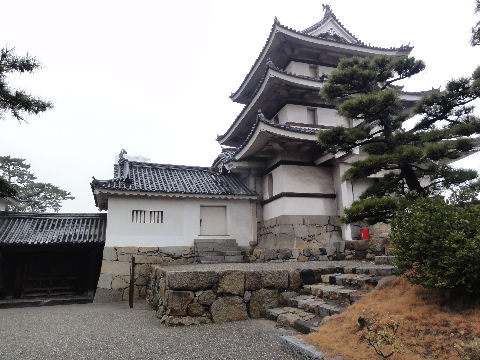 現存12天守の一つ小ぶりだが現存天守12のうちの一つであるので内部の階段、というより梯子は急で曲がっていて手摺を持たないと昇り降りが大変。この城は宇和島という四国の端にあったが交通の要衝でもなく攻める値打ちがなかったのかも。 |