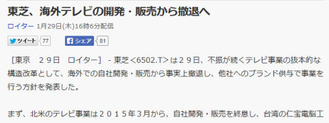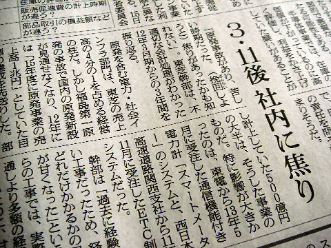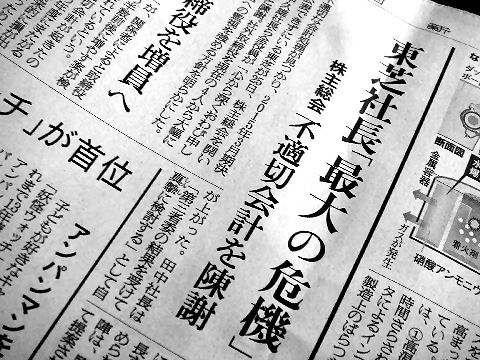 東芝の「不適切」会計は拡大、トップは逃げの姿勢?昨日の新幹線車内のニュースでも報じられていたが不適切処理が全社へ拡大、スマートメータやETCシステムの経験のない大形PJでの経費見積過小による修正がなされていないのが原因のよう、過去の台湾新幹線PJでの大失敗と同じ失敗の繰り返しで懲りない会社。「ヤメ検」による第三者委員会設置は経営トップの責任逃れだとの厳しい指摘も。 |