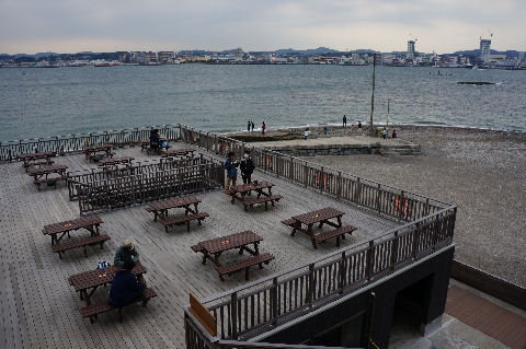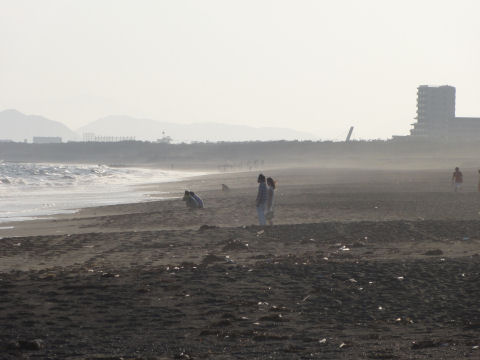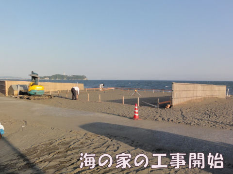 もう海の家の工事が始まっていた暖かくなり海岸には賑わい、海の家の工事も始まっていた。 |