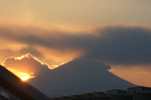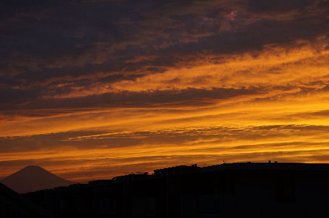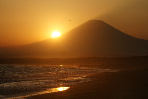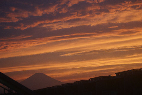 お天気は大荒れ三浦半島方面に厚い雲で日の出が臨めない夜明け、太陽は遠慮がちに隙間から見えるだけ。午後になると雪交じりの天気で寒いお正月に、恒例のニューイヤー駅伝ではトヨタ自動車が優勝。 |