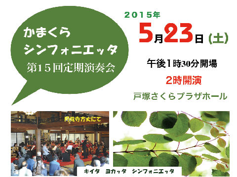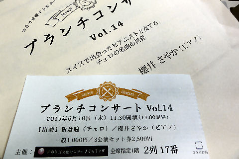 鎌倉シンフォニエッタの公演地元のアマ室内楽団だが盛況、すぐ後ろのオバサンが演奏中にぼそぼそ呟いて五月蠅かったのはガッカリ。6月の新倉瞳のブランチコンサート(チェロ)の指定席チケットも買って来た。 |