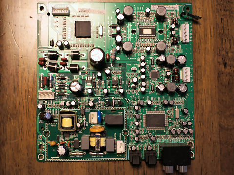 内蔵のアンプはデジタルアンプだった動作不良のアンプ部は設置前に動作確認せずに撤去、内容を見ると3.1Chの4つ分のデジタルアンプ内蔵だったが電源が弱そうでこれでは良い音は望めそうもない感じ。 |