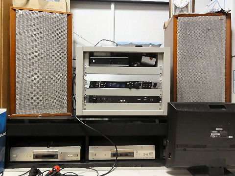 オーディオラックを購入スピーカの位置を高くしようとスタンドを探していたがなかなか良いものが無くあっても高価、方針を変えて低めのオーディオラックを探していたが内臓アンプ不良の格安品を見つけて落札、ほぼ運賃。キャスタがあるが取り付けずそのまま設置しスピーカを載せて音出しまで実施。 |