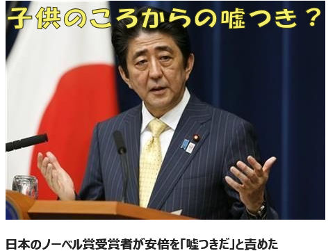 子供の頃からの嘘つき?まあ、その程度かと:問題の平気でウソがつける性格は、実は小学校時代からのものだったようだ。安倍には2歳年上の兄がいる。この兄弟の性格が対照的で、夏休みの最終日、兄は宿題の日記ができていないと涙顔になっていたが、安倍は「宿題みんな済んだね?」と聞かれると、まったく手をつけていないにもかかわらず、「うん、済んだ」と平然と答えたという。ウソがバレて、学校側から1週間でさらに別のノート1冊を埋めて提出するようにと罰が出ても、本人がやらず、安倍の養育係だった女性が代わりにやってあげていたというのだ。一般人の子どもはウソをついたら必ず代償があると教育されるのが普通だ。ところが、安倍にはその経験がなかった。罪悪感が皆無で、自分のウソに責任をとらないまま、大人になってしまったようなのだ。 |