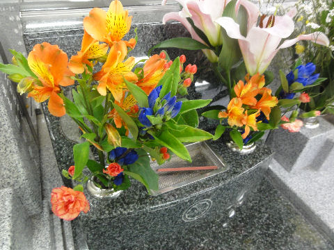今年最後の墓参りに年末で花が2割位値上がりしているので2200円以上になった。 前回の花は水はゼロだが萎れ始めという感じで水さえ補給すてばもっと持ちそうだが残念。 |