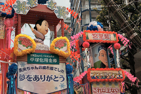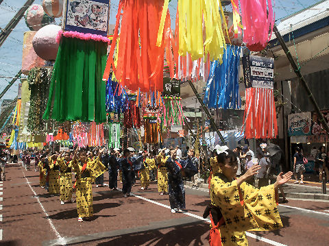 国府津の帰路、もう一度「平塚・七夕」へと途中下車。さすがに日曜日で大混雑、メインの通りは左側一方通行になっていた。 |