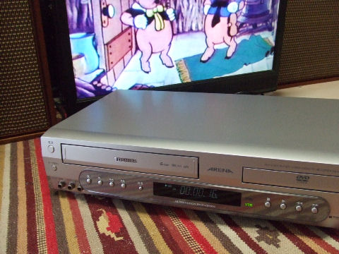 ヤフオクで買ったビデオデッキが届いたのでさっそく動作確認、VHS、DVD共再生OK。さっそく手持ちのテープから取込み開始、 でも一部のテープでは画像が揺れる、画面が途切れるなどの劣化による不具合もある。 |