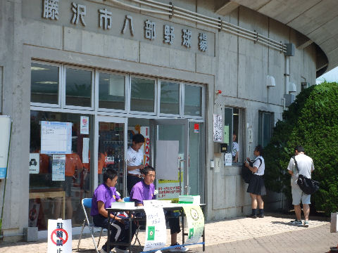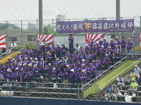 桜ヶ丘高校:藤嶺学園藤沢高校これで決まったと思いきや藤嶺藤沢が5回表に5点を取り返して僅差に、最後は桜が丘が逃げ切った。 11時開始でほぼ2時間経過してもまだ5回表が終わったところ、まあ、とにかく暑いので諦めて帰宅。 |
