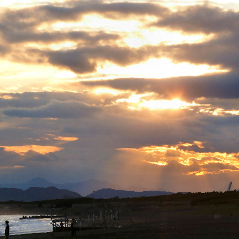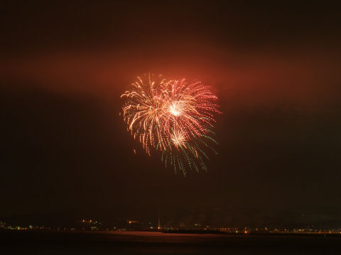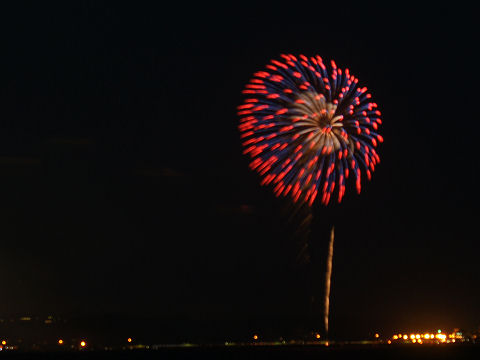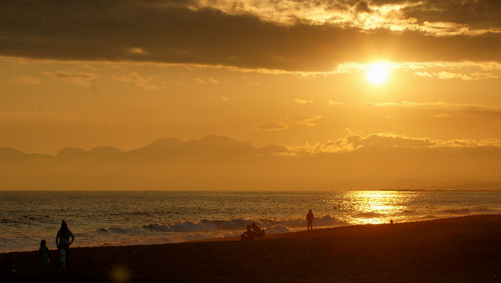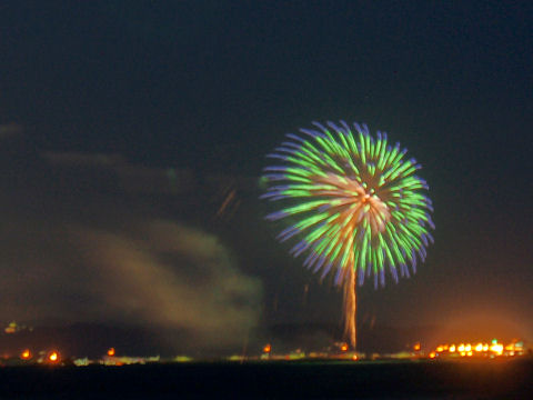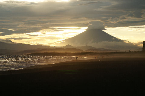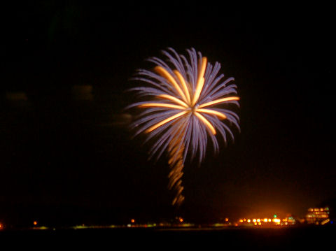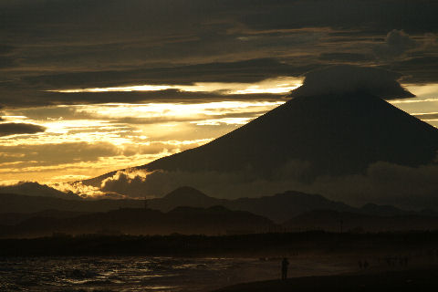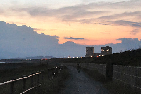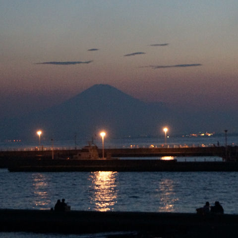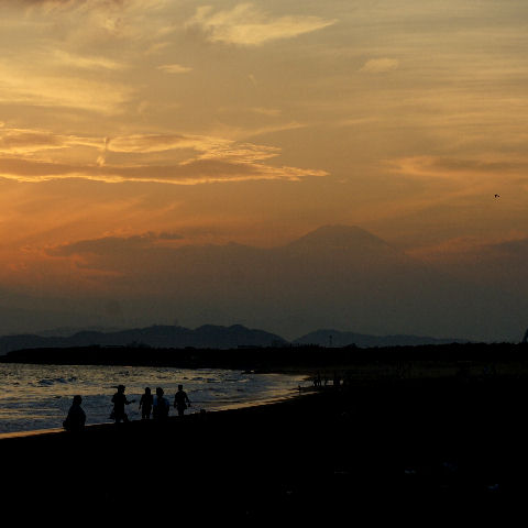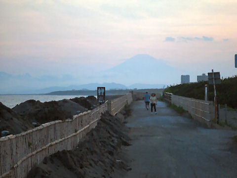 霞んだ富士山と鎌倉の花火富士山は夕方になりやっと霞んで見えるという状態が夏の風景。 夜は今夏初めての花火大会である鎌倉の花火が見えた、遠いので小さくしか見えないけど、これから毎週のように何処かである。 |