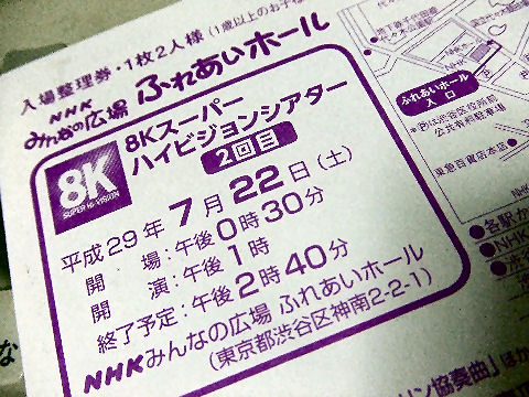 音楽での充電にチケット入手サマーミューザの最前列チケットを入手、一度座ってみたかった席、演目はスメタナの連作交響詩「わが祖国」。 もうひとつはNHKふれあいホールでの8Kスーパーハイビジョンによる諏訪内晶子+N響によるシベリウス・バイオリン協奏曲の鑑賞券。 |