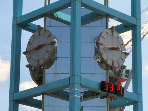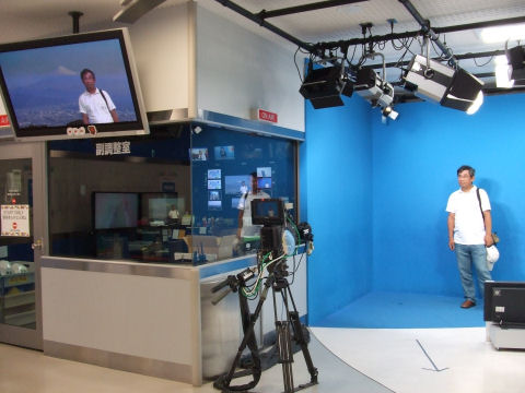 8Kまで時間があったので無料公開日のスタジオパークへ。模擬スタジオが空いていたので記念写真?を撮ってもらった。 夏休みで子供連れで賑わっている。 |
