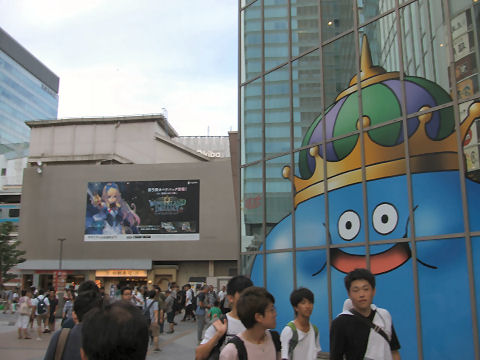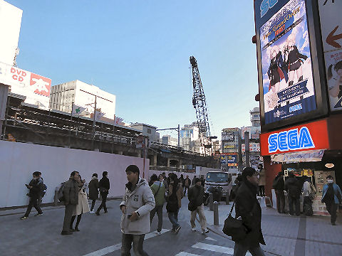 駅前は大混雑、今や外人さんの目玉ポイントとなったスクランブル交差点を撮影する観光客が多数。 |