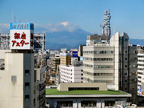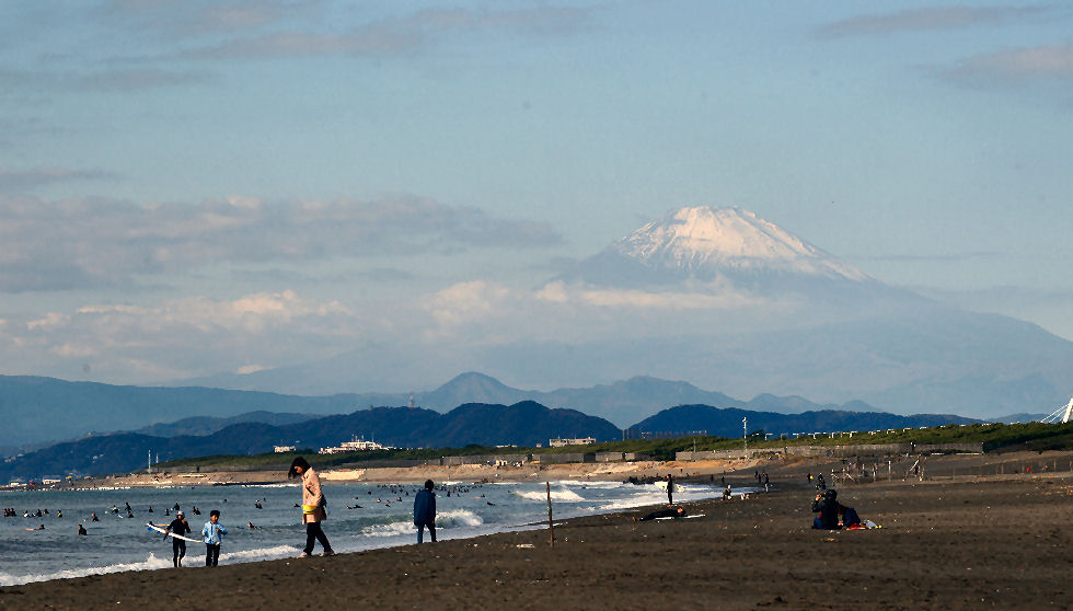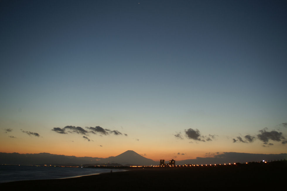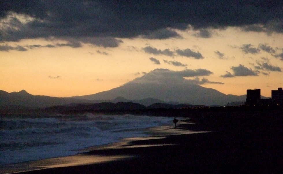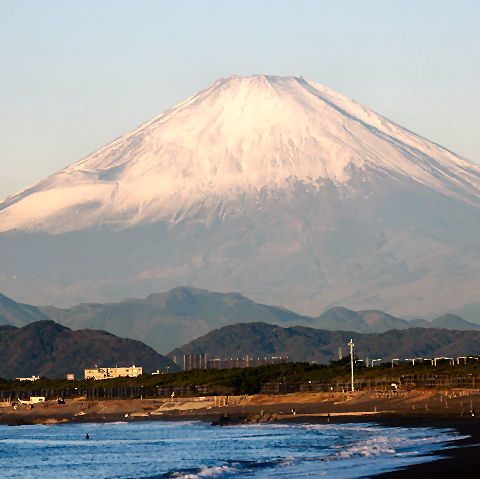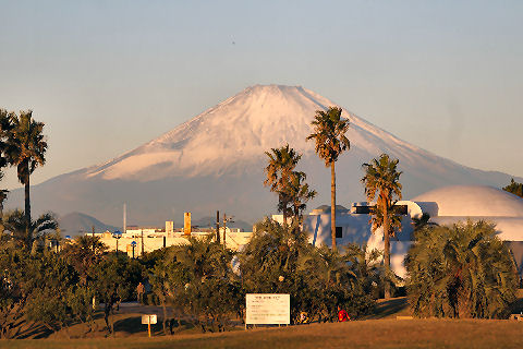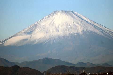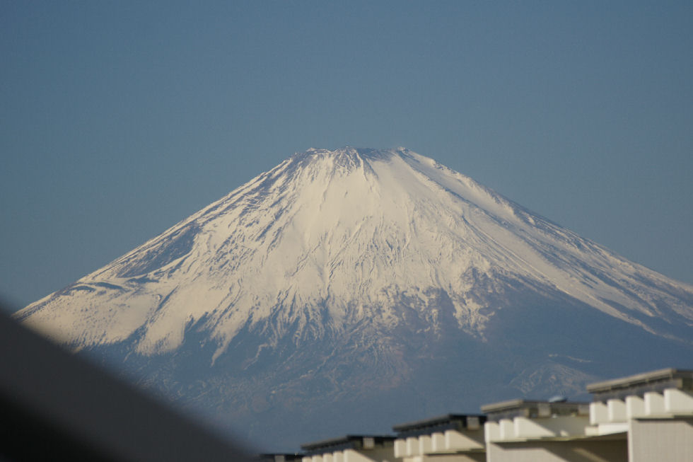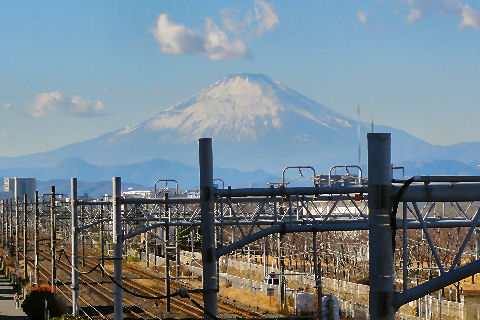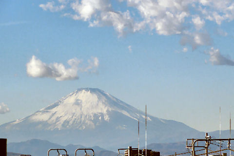 辻堂駅からの富士山駅西口から見える富士山。駅周辺はマンションやアパートが増えて東海道線の上から覗く富士山しか望めなくなった。 |