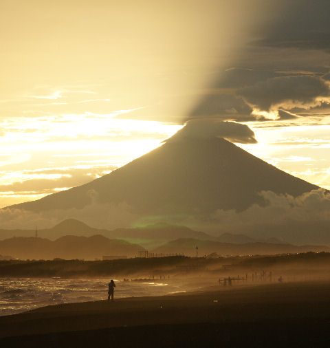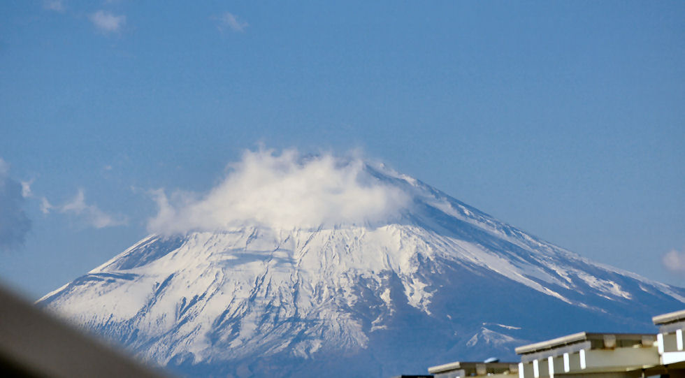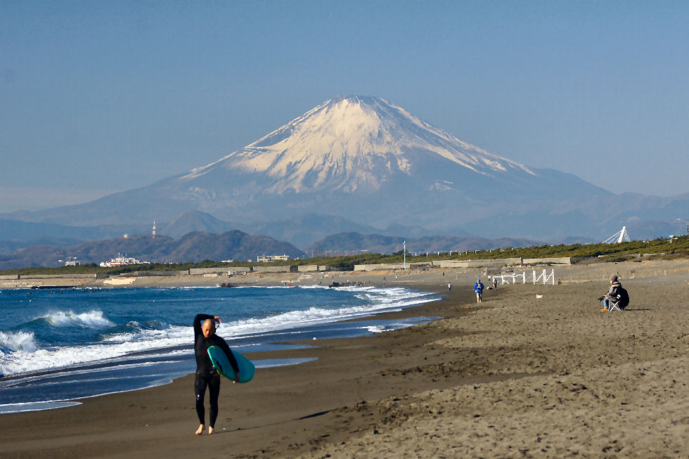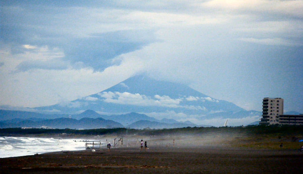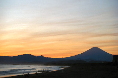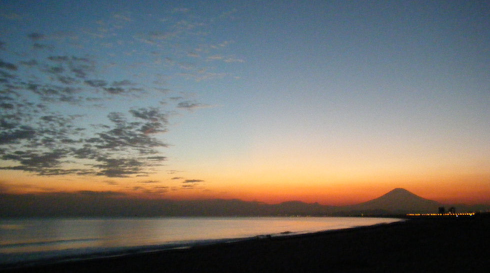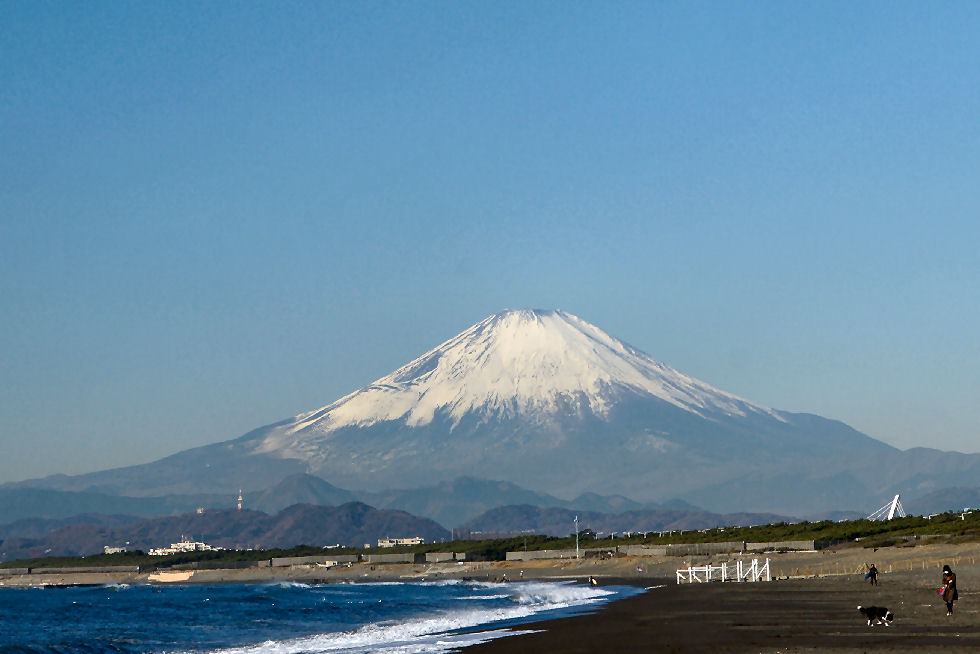 辻堂駅からの富士山駅西口から見える富士山。駅周辺はマンションやアパートが増えて東海道線の上から覗く富士山しか望めなくなった。 |