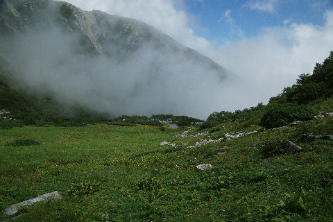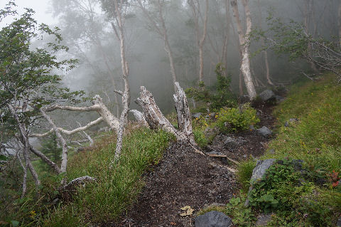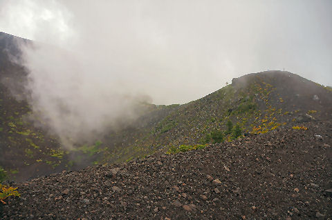 雪が減り夏景色の富士山 |