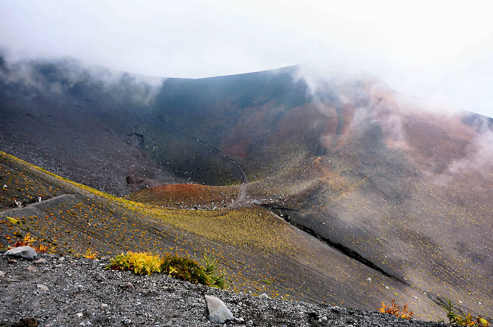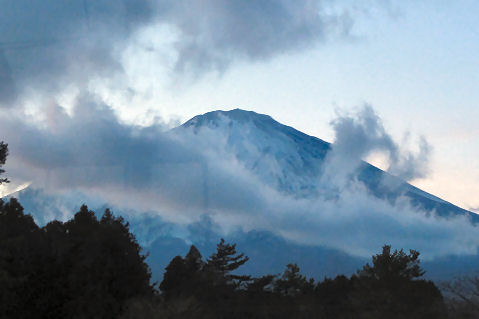 観光客が多数集まる3時半前には人が続々集まってきて賑わい、終了してもまだ明るく夕焼けもなし。 4時前のバス(15分遅れ)で御殿場駅へ戻り帰宅。バスには外国人観光客が目立ち運転手も英語で対応と馴れたもの、さすが国際的な観光地。 |
