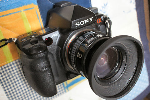 α900の確認撮影広角レンズをつけて試験撮影、このレンズはフィルム時代のものなので白い物や強い光線は苦手のようではレーション気味になる。 それでもミラーは完全に接着されたよう、持ち出して撮影に行こう。 |