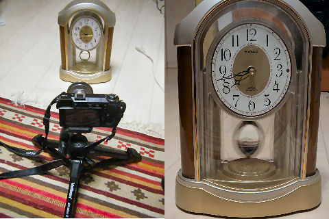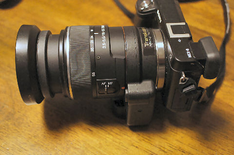 異様に大きいが確かに効果あり上がアダプタ無、下が使用時で確かに画角が広がっているのが解る。 広角といっても元々がワイド端で35mm相当なので22mm相当位になるよう(0.63倍)。 |