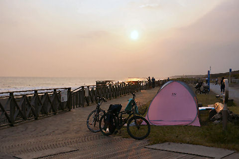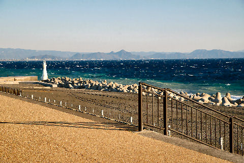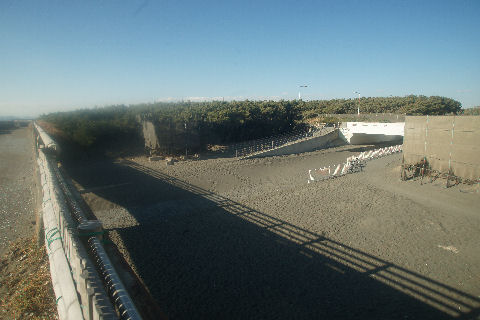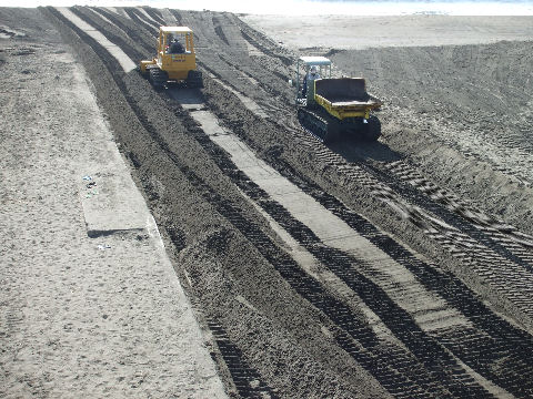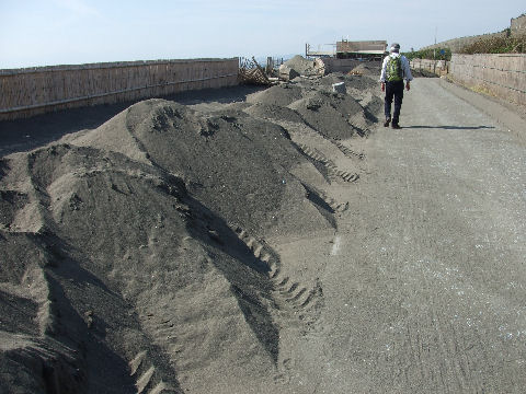海岸遊歩道は砂だらけで通行不能海岸遊歩道は強風のせいでまた砂だらけ、除去工事が進行中。溜まった砂は波打ち際に捨てているが風が吹くとまた飛んできそうで鼬ごっこ? |
