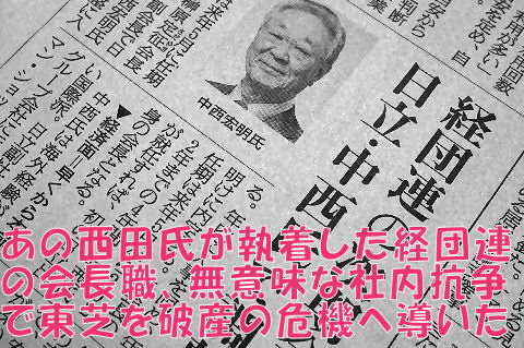 東芝破産危機の元凶?西田氏が死去先に西室氏が亡くなったが、次いで西田氏が死去。一度、仕事で話をしたことがあるが鋭い指摘をされた記憶あり。 後継者選び・WH買収は大失敗で東芝大苦境の引き金を引いたのは間違いないが本人は否定していた。 |