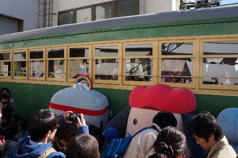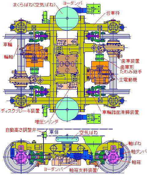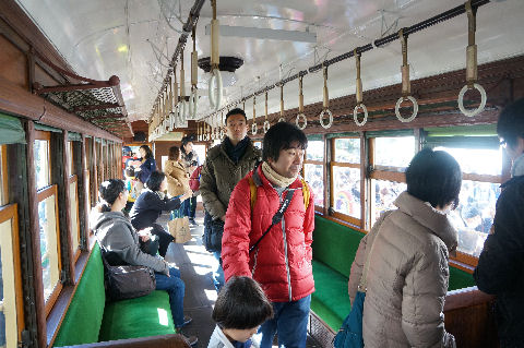 子供連れで大混雑珍しいのがリニアモータ本体、だから台車もごく低いのでトンネルサイズが小型化できている(他との互換性はない)。 一方の浅草線は京急・京成と同規格にして相互乗り入れできている、羽田空港発の成田空港行きなんて電車もある。 |