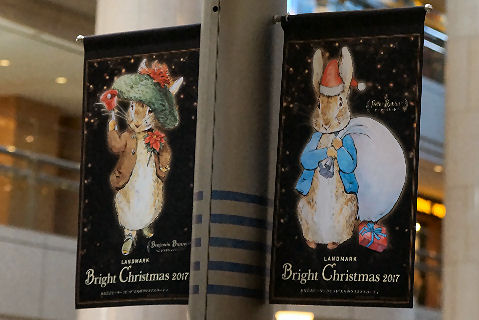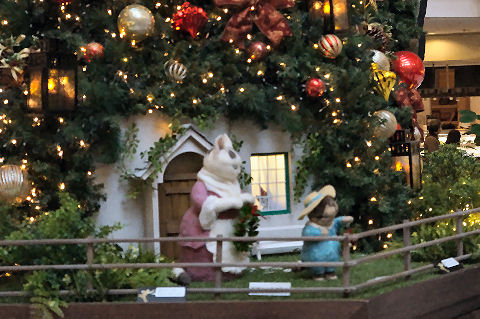 ランドマークはピーター・ラビット仕様ランドマーク側はBright-Christmasという名前でピーターラビットを使った飾りつけ。 |