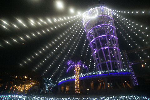 超広角レンズを試す撮影にα900のミラー修理が大丈夫そうなので(富士川の新幹線を連写撮影しても問題なし)シグマの超広角レンズを試すべく江の島を再訪問。 やはり18oの画角は十分広く余裕でタワーと地面のイルミネーションが入る。ただ中心にならないものは激しく歪む、当然だけど。 |
