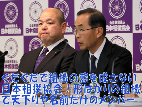 組織として機能していない相撲協会暴行事件の被害者側を非協力的(要は自分たちの言うことをきかないから)と理事解任しようとする呆れた組織、そういえば公益財団法人へ移行する際も自分勝手な我儘ばかり言って期限ぎりぎりまで揉めたなあ。 外部委員を入れた組織を作り体裁だけは整えたが、そのトップが池坊なんとかいう元国会議員の非常識なオバはん。 |