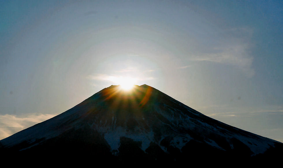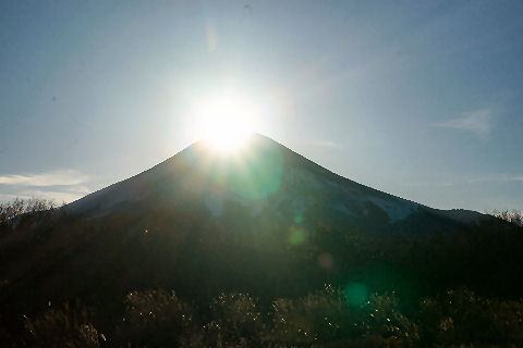 花の都公園のダイヤモンド富士夕方まで晴天が期待できそうなので御殿場からバスで花の都公園へ。北部の冬季閉鎖の駐車場には人が多数。 ここは富士山のすぐ近くなのでダイヤモンド富士は3時半過ぎと早く周りも明るいし富士山が大きく太陽が小さいと自宅周辺からみるものとはかなり異なる。 |