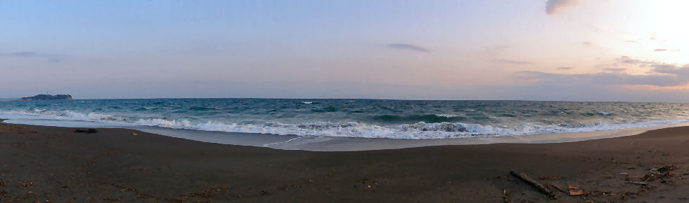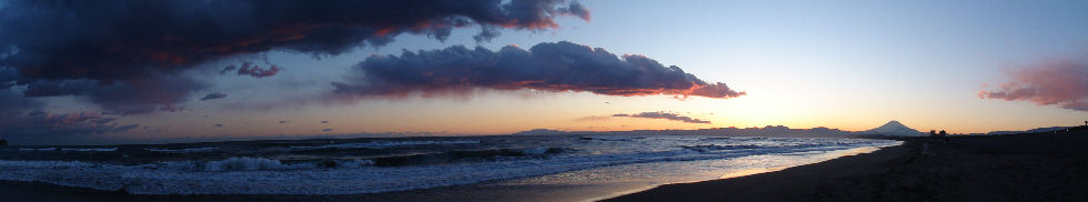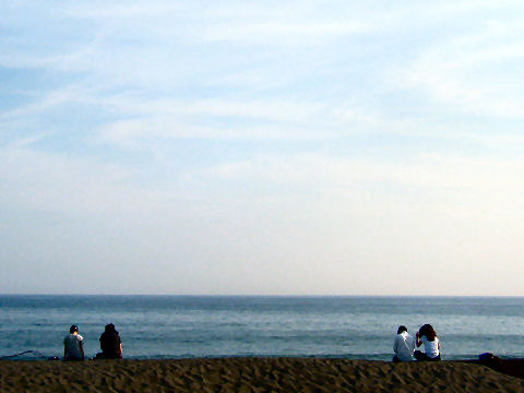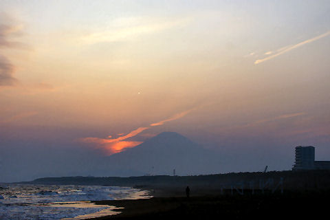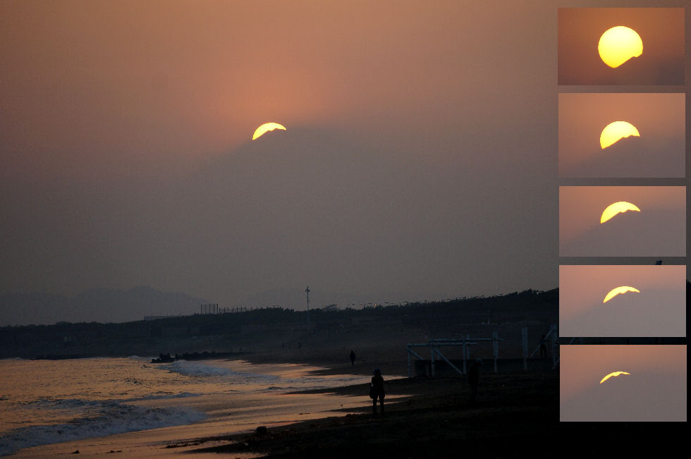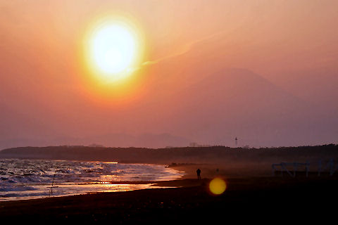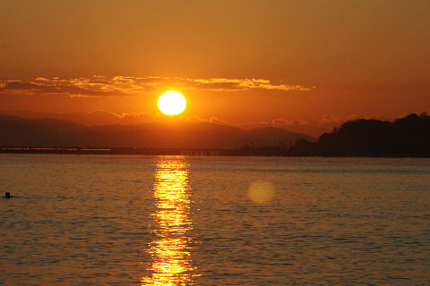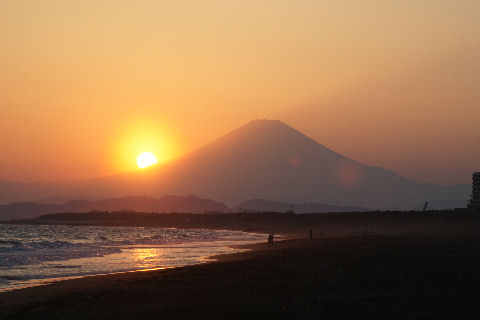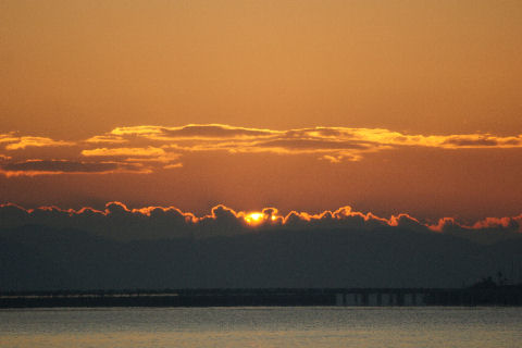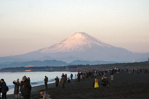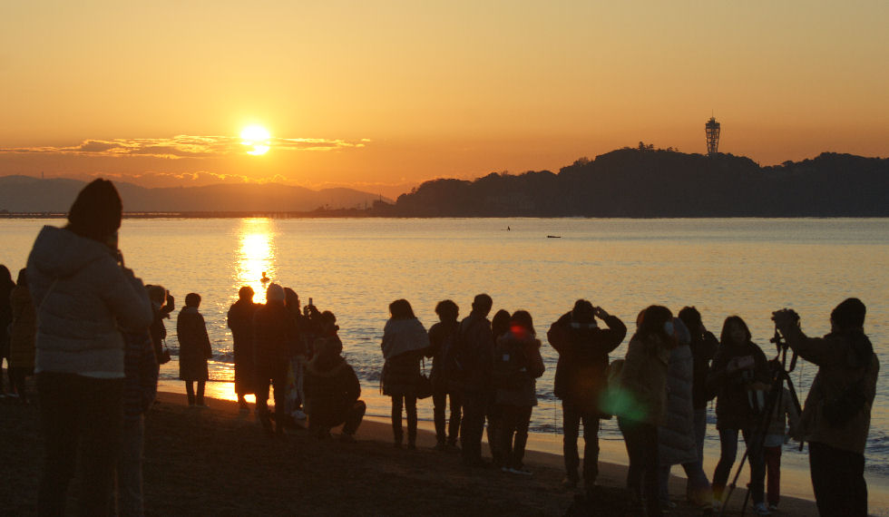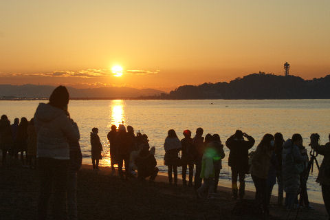 雲がほぼ無さそうなので海岸まで日の出を見に行ったが、同じ思いの人が多数のようで海岸は結構な人の数。 |