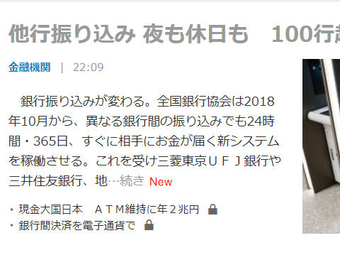 今更感だけが強く漂う「ああ勘違い」遅い・高い・不親切の三拍子揃った銀行の振替がやっとまともになる、というニュース。別にそんなところに金をかけなくても利息を増やしてほしい。