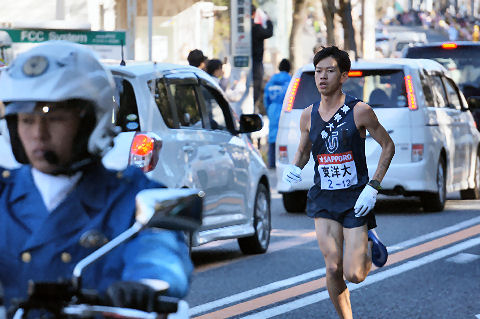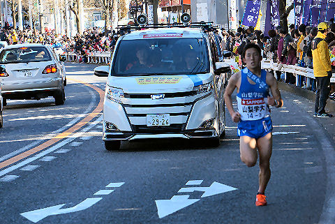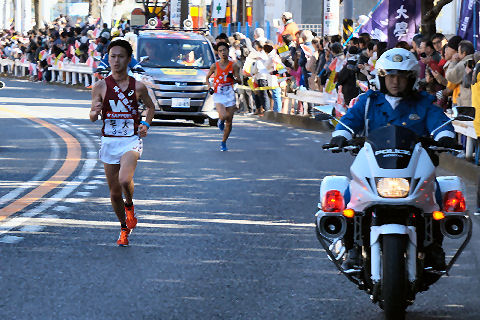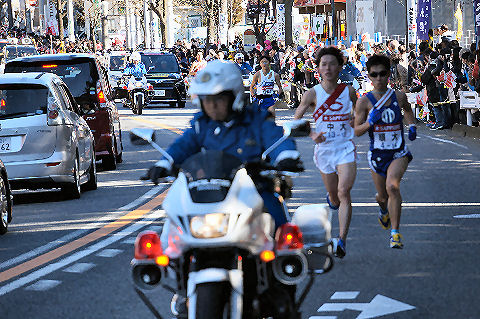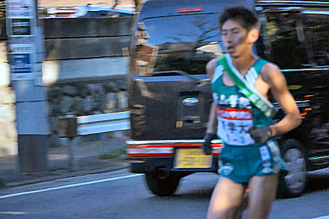 東洋大がトップ、青学大が続く最後の学連選抜は5分以上離れているので早めに切り上げて戻ってきた。 |
