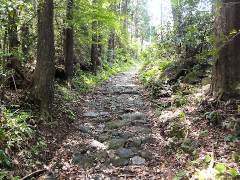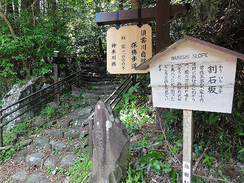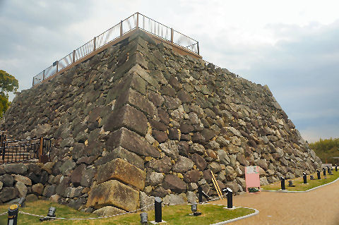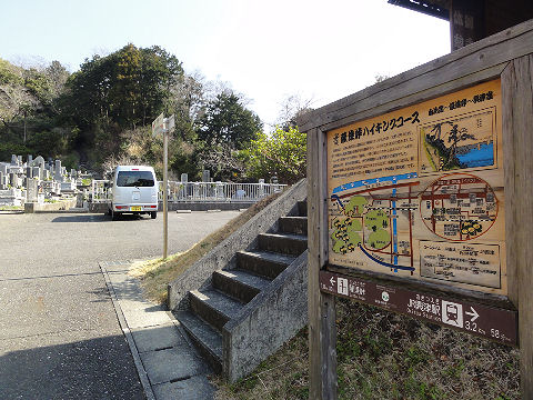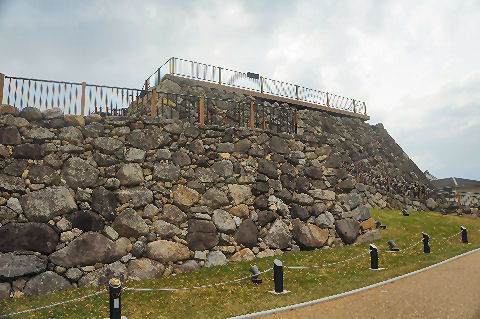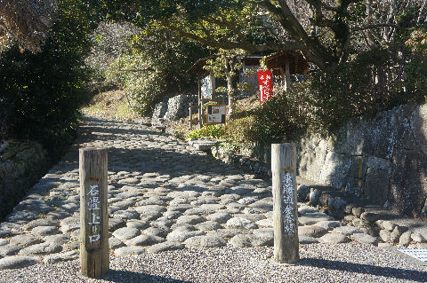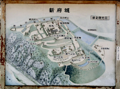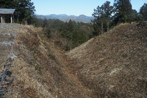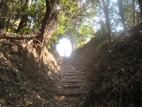 金谷駅の裏手から旧・東海道の金谷坂・石畳の急坂を登ったところにある国指定の史跡。だいぶ前に東海道を金谷から掛川まで歩いた際に通ったはずだが。 史跡は中世の城で土塁や堀で固めた砦のようなもの、後ろは断崖なので前面は馬出しを設けてある。 |