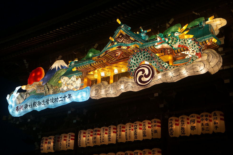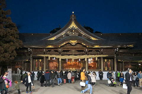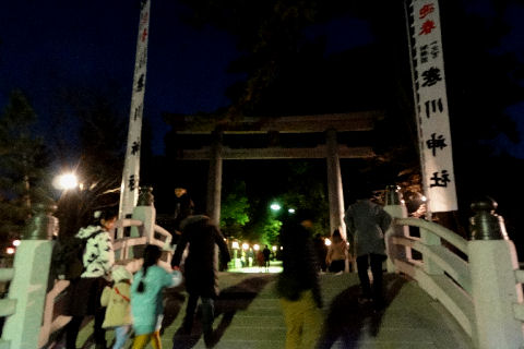 帰路、ちょうど夕暮れ時だったので宮山駅へちょっと寄り道し寒川神社へ遅めの初詣とねぶたを見てきた。 |