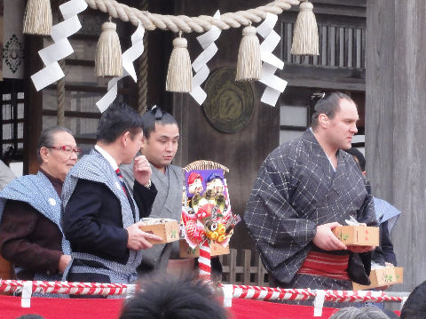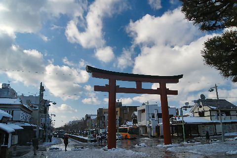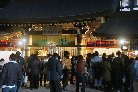 さすが4日ともなると参拝客は少な目、まだ参道の露店はやっていたが客足は少なそう。駅にも臨時出入口ができて係員が複数で対応。 |